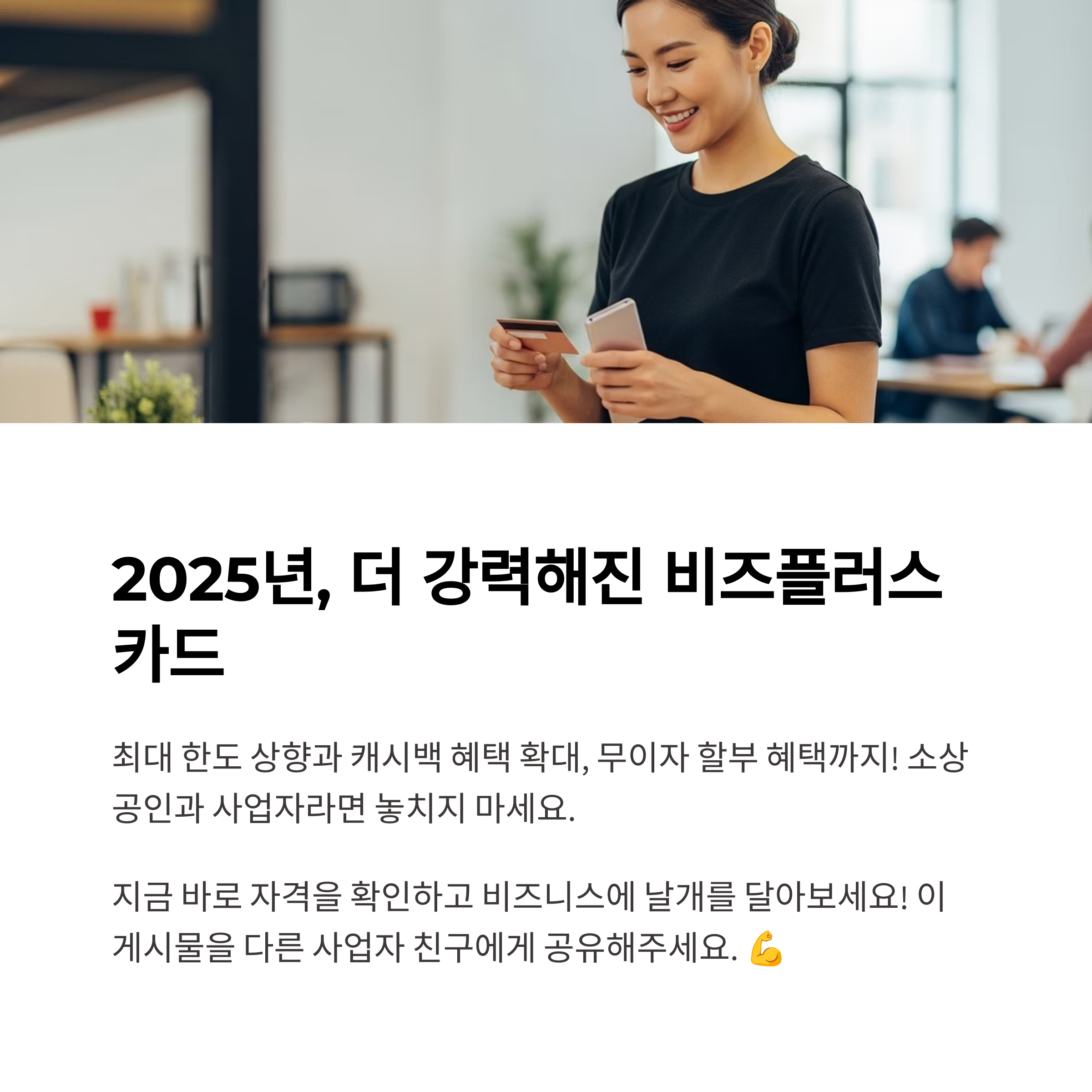 내 사업의 든든한 지원군, 비즈플러스카드로 현명한 자금관리 시작해보세요!