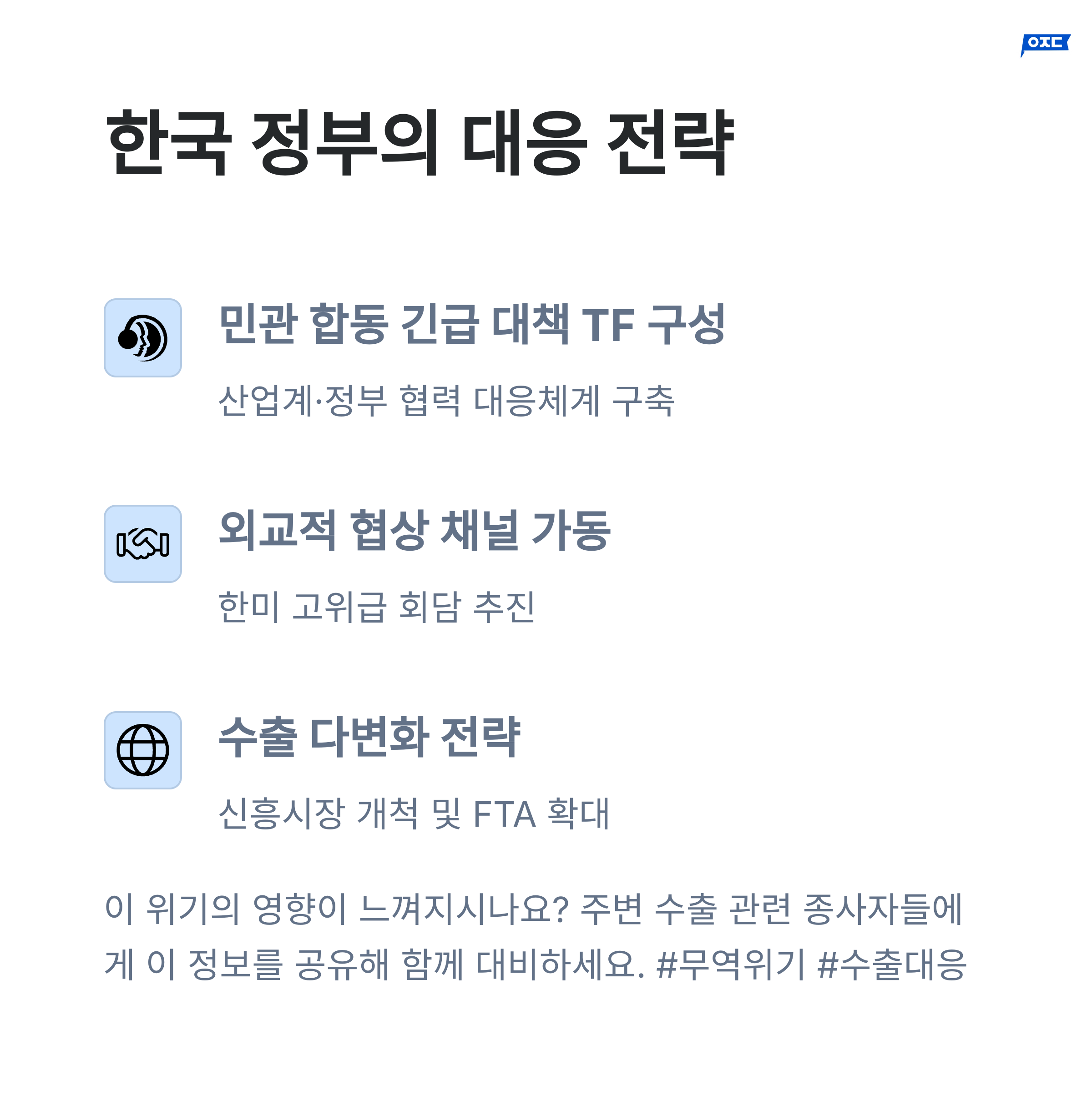 수출 시장 다변화, 현지화 전략 강화, 고부가가치 산업 전환 등이 대안으로 꼽힙니다. 위기 속에서 오히려 기업 체질을 개선할 수 있는 시점이죠.