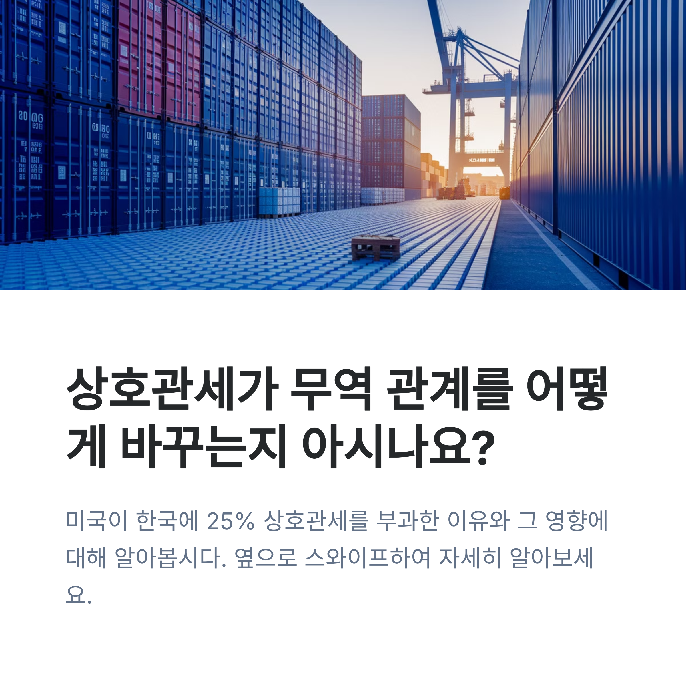 안녕하세요, 국제무역 이슈를 쉽게 풀어보는 블로그입니다. 요즘 뉴스 보셨나요? 미국이 한국산 제품에 무려 25%의 상호관세를 부과한다고 발표했어요. 처음 이 소식을 듣고 저도 깜짝 놀랐습니다. 이유는 한국이 미국산 제품에 실질적으로 50% 이상의 장벽을 두고 있다는 주장 때문이라고 하네요. 특히 트럼프 전 대통령이 복귀하며 다시 강경한 무역 정책이 수면 위로 떠오른 느낌이에요. 한국 자동차 시장도 그 중심에 있다는 사실, 알고 계셨나요? 오늘은 이 이슈가 왜 생겼는지, 어떤 영향이 있을지 하나씩 짚어보겠습니다.